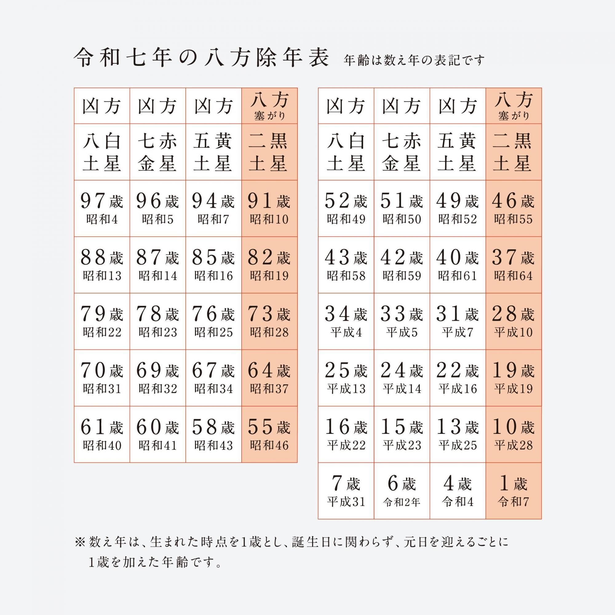 生まれながらにもつ本命星によって本年が八方塞がりや凶方にあたる方の、四方八方からの災いを祓え除くお守りです。